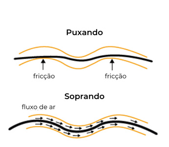 Em processos envolvendo o sopro, a fibra óptica é empurrada pelo conduíte a partir da utilização do ar comprimido, quando uma máquina sopradora é a responsável por essa ação.